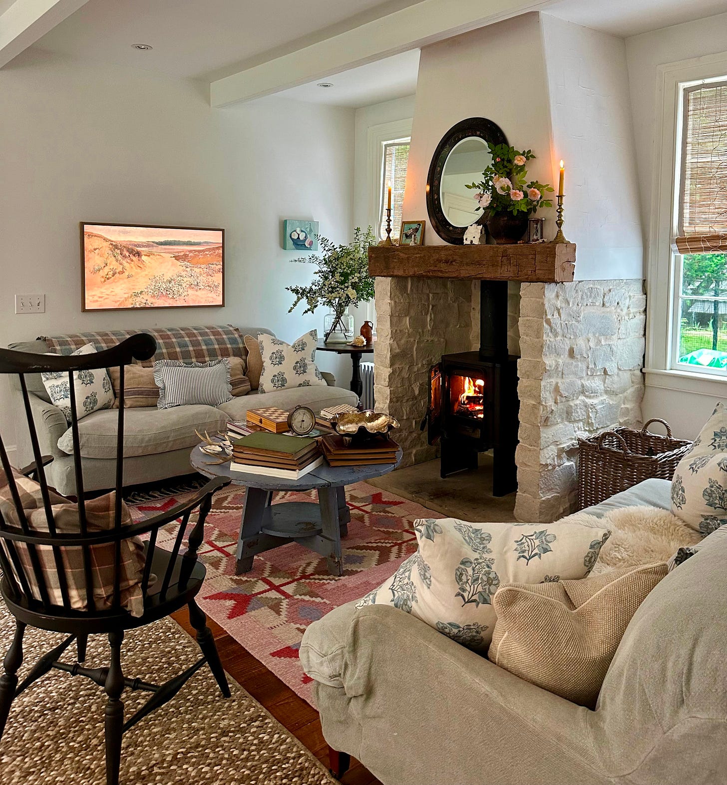 I loved this immediately. Another layer! So breezy. So accurate. So deeply design-correct. It sounds casual, but it contains an entire worldview. People in design talk about layering all the time, and I am 100% behind it. Like a good story, a good room should unfold. Your eye should feel intrigued, delighted, slightly curious. In a truly good room, there’s a small tale unfolding in every corner—told through art, heirlooms, books, pottery, and the faint remnants of gatherings past.